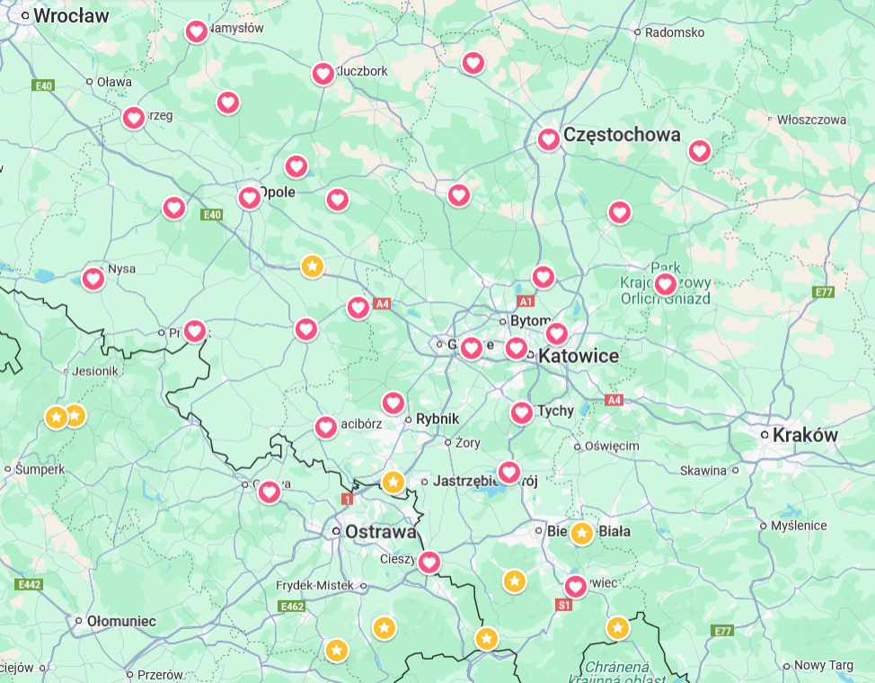 Oto szczegółowy opis miejsc na mapie: